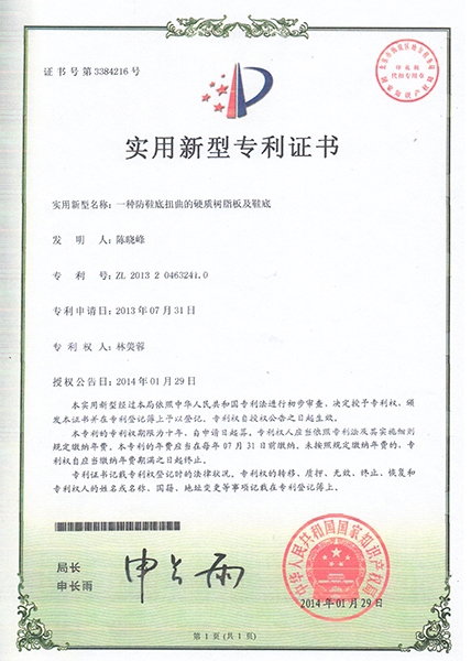 实用新型专利证书